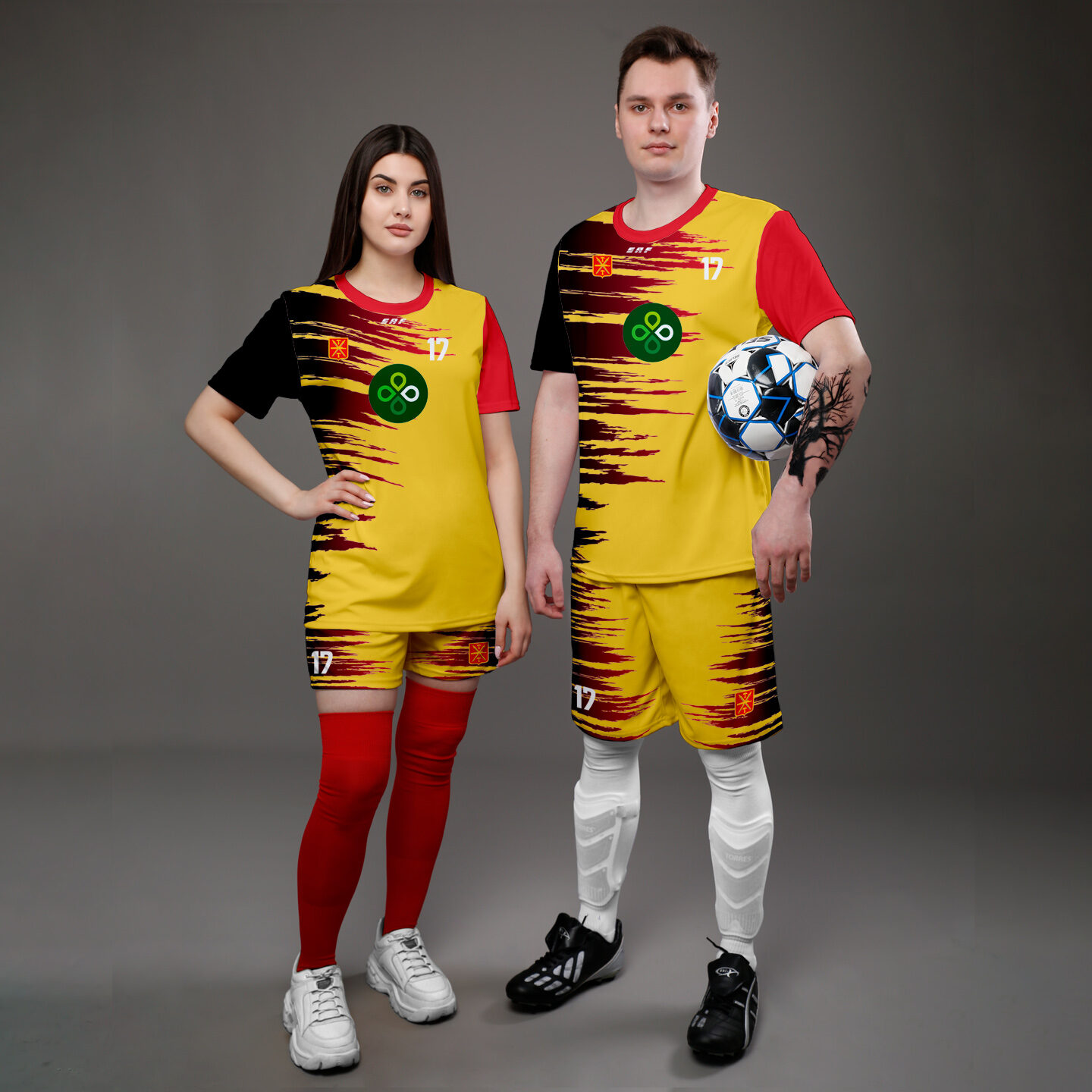 • *Вы можете посмотреть и выбрать дизайн в конструкторе футбольной формы и наши дизайнеры наложат его на ваш спортивный костюм.