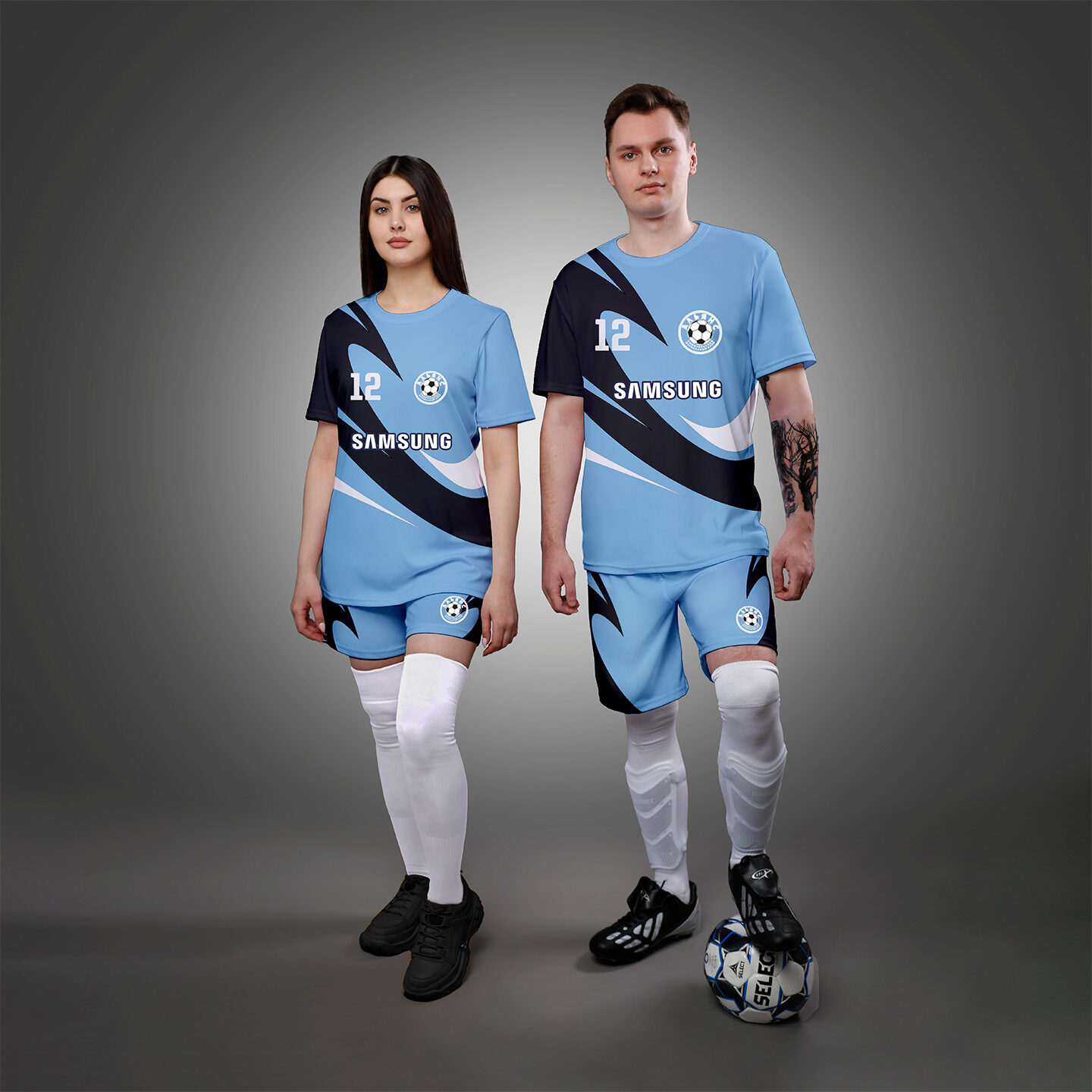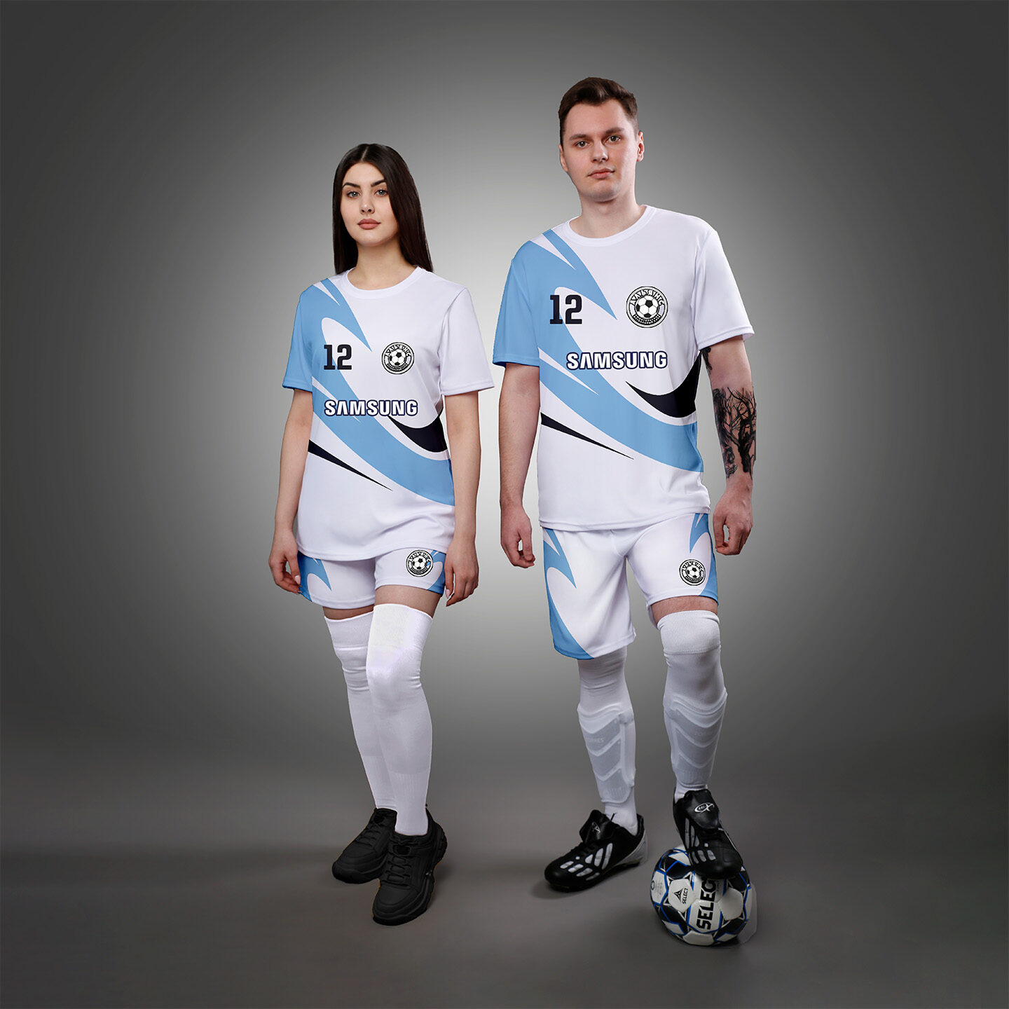 • *Вы можете посмотреть и выбрать дизайн в конструкторе футбольной формы и наши дизайнеры наложат его на ваш спортивный костюм.